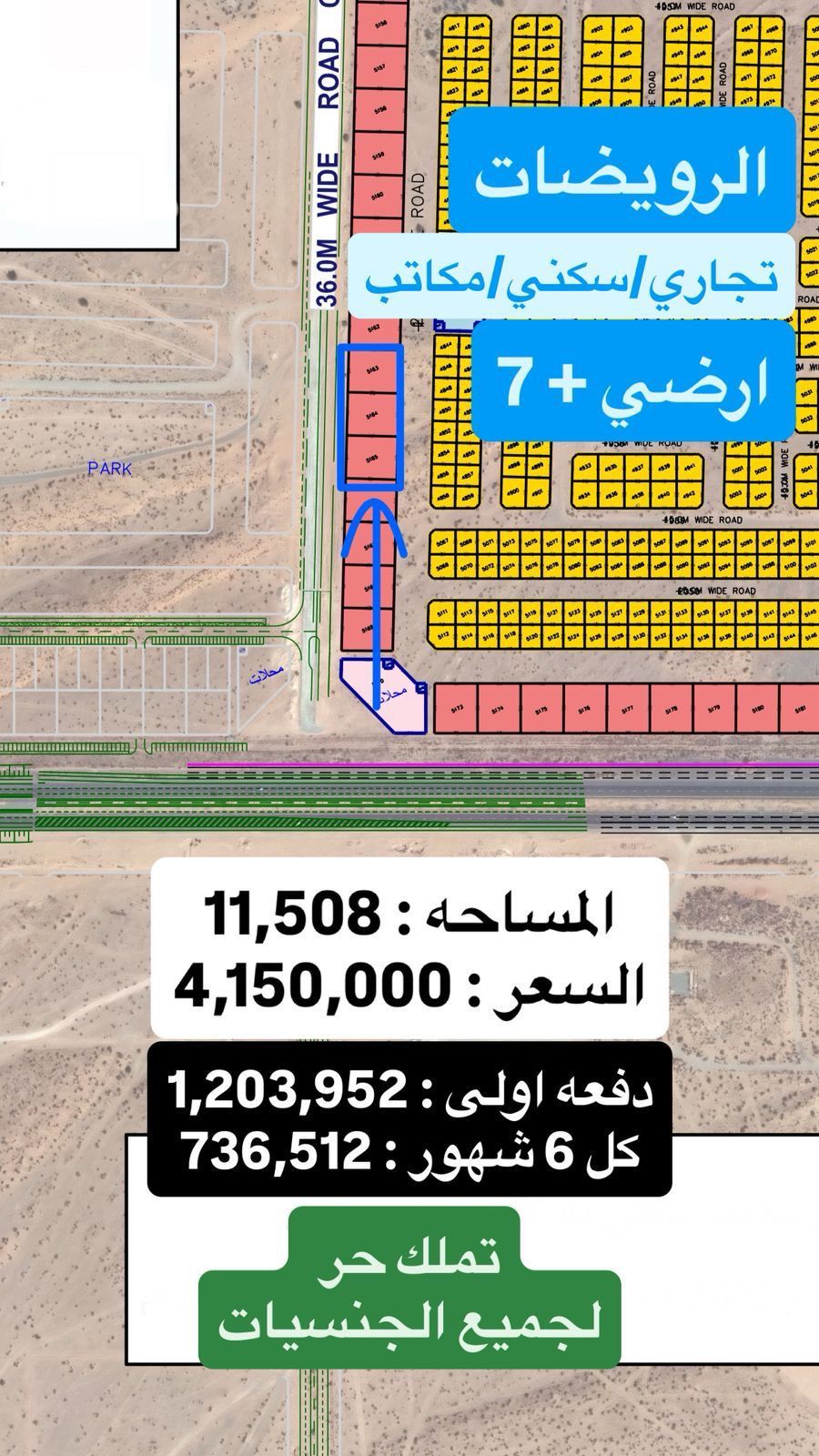 For sale Commercial/ Residential Land - Al Ruwaydat, Sharjah - Authorisation Ground + 7 - Area 11508 ft - Total price AED4150000 - Down Payment AED1203952 - Installments AED736512 every 6 months - Ownership free for all nationalities A strong investment opportunity in a distinctive and serviced location in Ridat