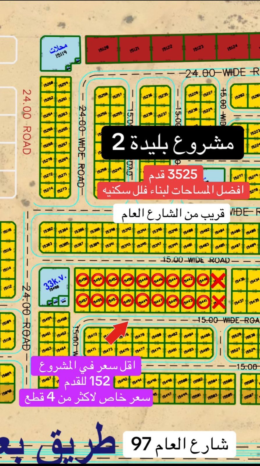 Residential land for sale - Blida 2, Sharjah - Area 3525 ft - Foot price AED152 - Total price AED535800 - Location Close to 97th Street - Advantage One of the best spaces suitable for the construction of residential villas A privileged location and close to services, an excellent opportunity for housing or investment