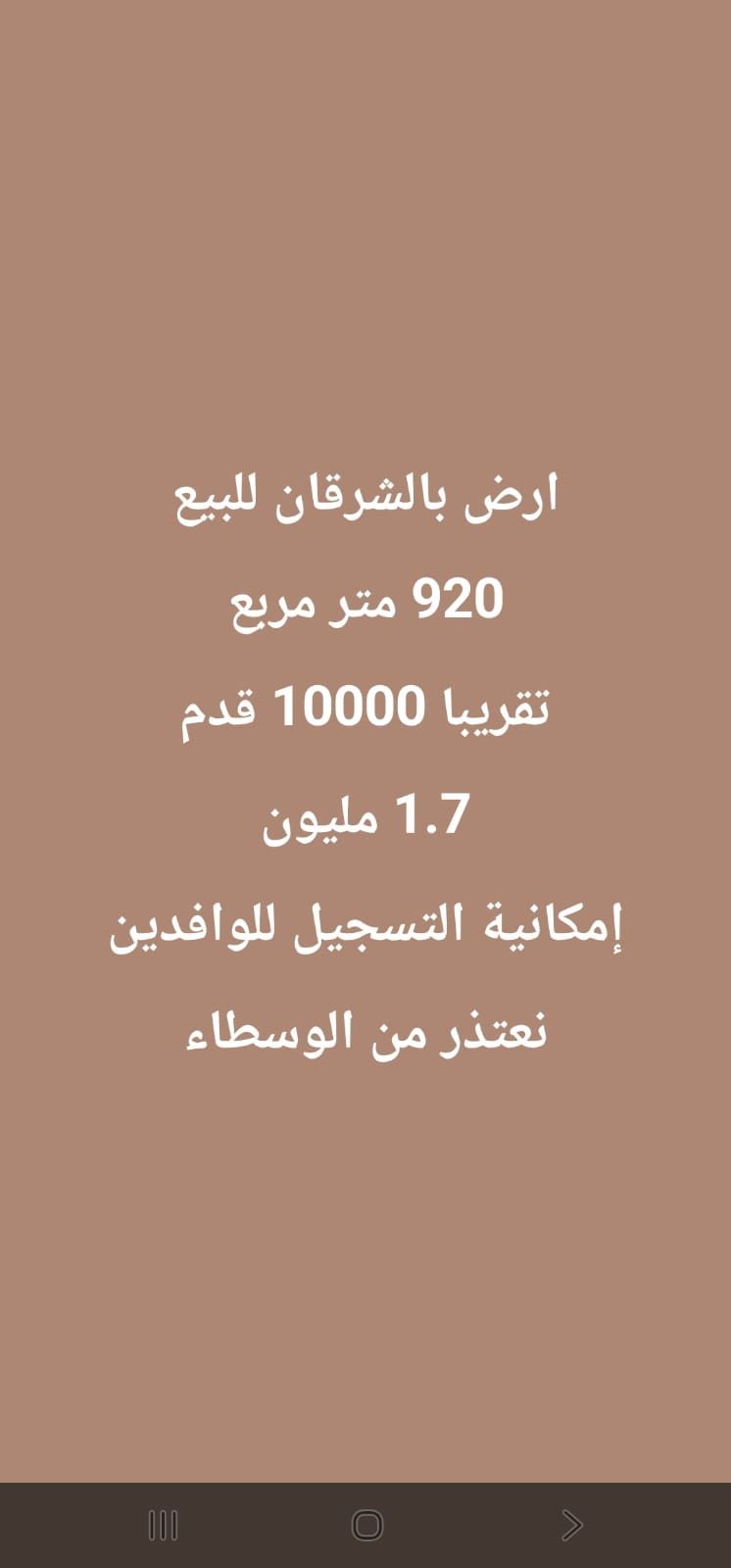 للبيع أرض في الشارقة منطقة الشرقان مع امكانية تسجيل وافدين عرب مساحة 10 ألاف قدم بسعر مناسب موقع مميز جدا كمال