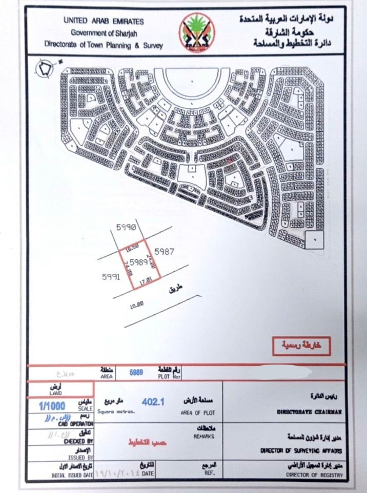Residential land for sale - Tilal Sharjah Excellent location, Area 4330 ft Foot price 310 dirhams Total price AED1342300