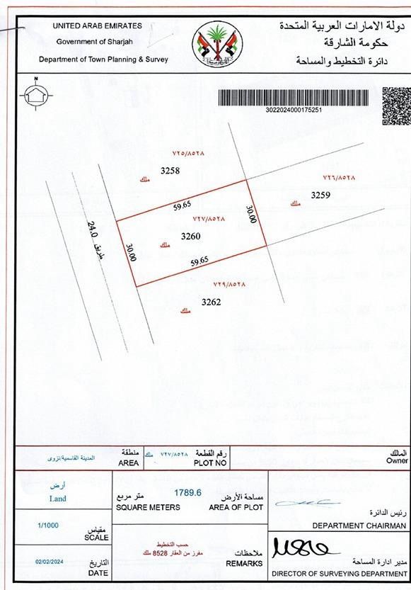 Industrial land for sale in Al Qasimia area, Sharjah. Freehold, open to all nationalities. 1789 SQM, suitable for all purposes