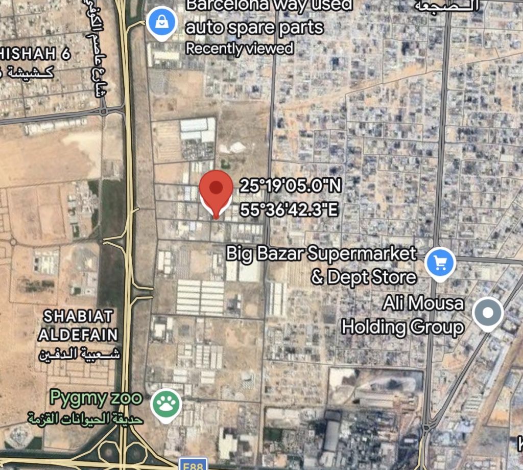 For sale in Sharjah, Al Saja Industrial Area, Sheikh Faisal, a land area of 27000 square feet, a distinctive location on Asphalt Street, close to the Emirates Transit Street, walled on two sides, owned by citizens and Gulf people, the price is 170 dirhams per foot, final