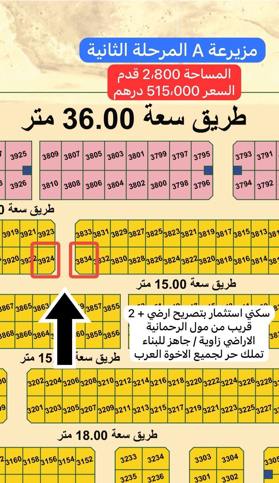 For sale two residential lands, an investment corner, Mazira A Phase II Sharjah Free ownership of all Arab brothers Land Area 2800 ft Permit Ground + 2 Ready for construction Close to Rahmaniyah Mall asking price AED515000