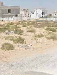 Residential commercial plot for sale on two streets in Al Hoshi, Al Badiea, Sharjah, freehold for Arabs. Area 6006 SqFt, permit G 1, fees paid AED45000. Head and tail plot with 18m front and back, on 18m and 7.2m roads, second block from 97m Mleiha Street. Final price AED2000000