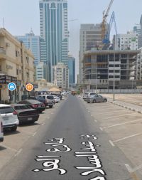 Land for sale in Al Majaz 1, Sharjah, area 14017 SqFt, ownership for UAE nationals and GCC. Second plot from King Faisal Street, near Al Majaz Corniche and Al Noor Mosque, close to all services. On 18m road with 43m frontage and 31m depth. Price AED480 per SqFt. Prime location near waterfront