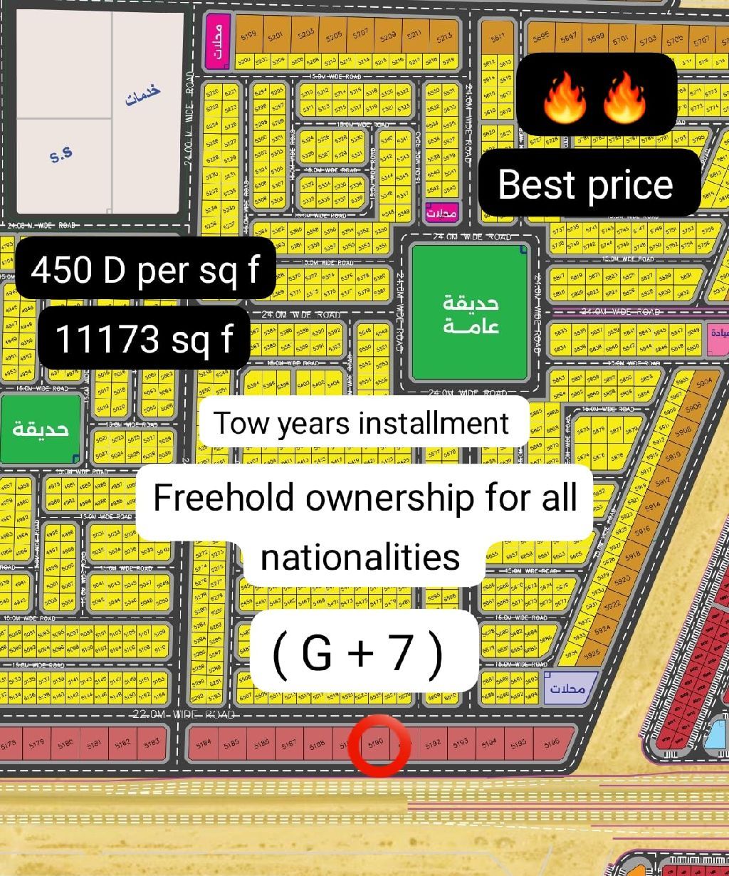 فرصة استثمارية مميزة للبيع في الشارقة أرض للبيع في مشروع الرويضات موقع مميز مناسب للاستثمار وبناء المشاريع السكنية أو التجارية المساحة 11173 قدم مربع نوع التملك تملك حر لجميع الجنسيات تصريح البناء أرضي + 7 طوابق نظام البيع متوفر بنظام الاقساط المريح سعر القدم 450 درهم السعر الاجمالي 5028000 درهم فرصة ممتازة للمستثمرين لبناء مشروع بعائد قوي في موقع واعد