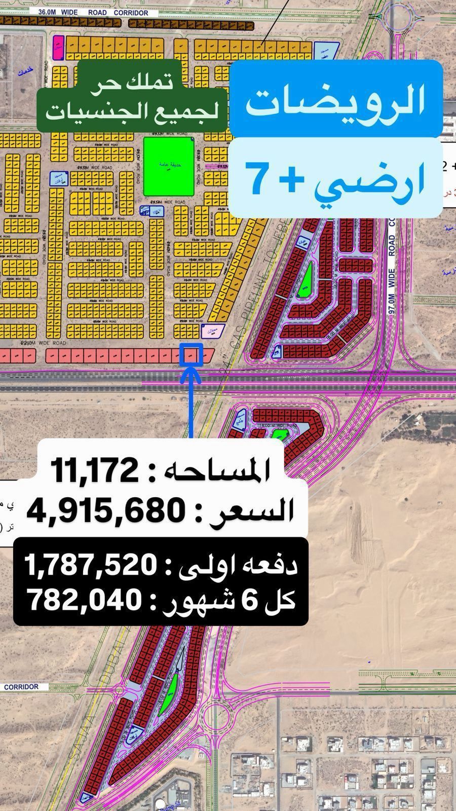 للبيع قطعة أرض تجاري في إمارة الشارقة بمنطقة الرويضات ضاحية الرويضات مساحة 11172 قدم تصريح أرضي + 7 موقع مميز قريب المسجد والحديقة والخدمات على شارع خور فكان مباشرة تملك حر لجميع الجنسيات السعر 4915680 درهم اقساط سنتين
