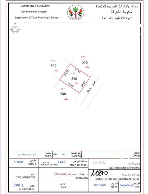 Commercial Residential Land for sale - Al Durari Commercial Sharjah A corner on two streets in a strategic location within the commercial area 10776 square feet Permit Residential building (ground + parking + 5 repeated floors) Ownership for GCC nationals asking price AED2450000