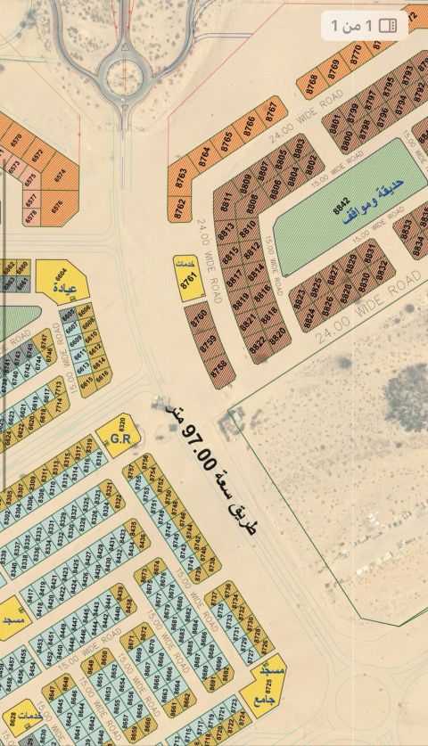 Corner plot of land for sale on an asphalt road in Sharjah, Basateen Al Zubair area. 5333 SqFt (504 SQM) asking price AED700000