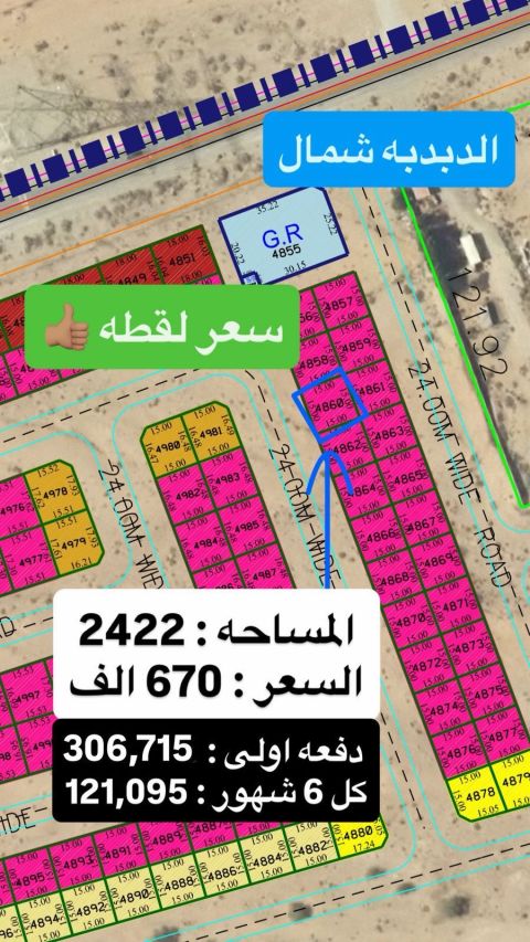 Commercial Residential Land - Al Dabdaba North of Sharjah - 2422 ft for sale commercial residential land in Al - Dabdaba - North Sharjah, ground building permit + 2, suitable for investment. Area 2422 ft - Price 670000 dirhams - Down Payment AED306715 - Installment AED121095 every 6 months