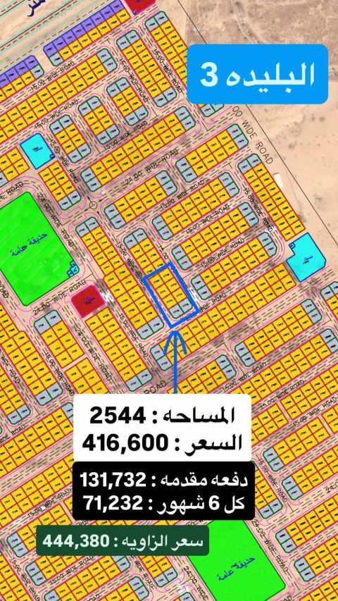 Commercial land for sale in Blida 1 Area 8146 SQM Excellent location on three streets Directly on Mleiha Street Opposite the park and mosque (Installments remaining) asking price 400 dirhams per square foot asking price 3258400 dirhams only