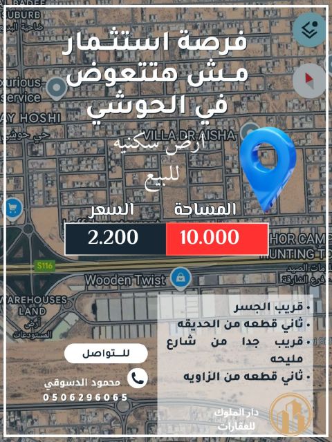 A unique investment opportunity in Al Hooshi, Sharjah Residential land for sale Location Al Hooshi - a prestigious and quiet area Second plot from the corner and the park Very close to the bridge for easy access Area 10000 SqFt Price AED2200000 only Features Prime location close to services, schools, and main entrances Upscale and quiet residential area Suitable for build