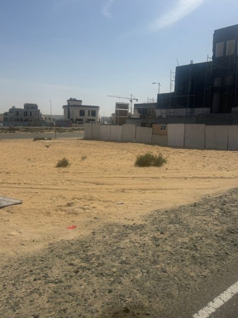 Residential commercial plot for sale in Al Malha, Al Ruwaidat, Sharjah, freehold for Arabs. Area 3243 SqFt, building permit G 4. Prime location near Al Dhaid Airport Road and Emirates Road, on 24m street with 19m frontage, close to Book Fair and new Conference Center. Price AED650000
