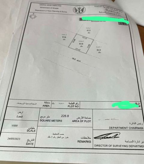 For sale in Al Atheeb, Al Ruwaidat, Sharjah commercial land with an area of 2647 SqFt. Ground floor building permit + 4 floors 550000 dirhams required