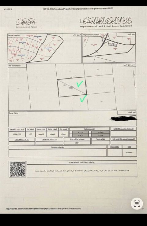 Land for sale in Al Yasmeen Area A great investment opportunity in a strategic and vibrant location, ideal for building a residential villa or an investment project. Land Details Area 282 SQM Located on a wide street Prime location, very close to shops Close to Al Rahmaniya Road Building permit Ground + 2 floors ( G 2) Freehold ownership for all nationalities asking price AED850000 Excellent location