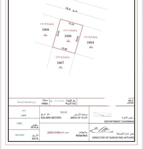 For sale, a residential plot of land in Sharjah, Al Hoshi area, Al Badie suburb. The plot area is 20000 feet. The length of each plot is 30*60. A very distinguished location, close to Maliha Street, the bridge, the mosque and the park. Gulf and Arab ownership. asking price is 3 million and 300 dirhams