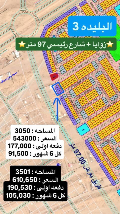 Residential land for sale - Blida 2, Sharjah - Area 3525 ft - Foot price AED152 - Total price AED535800 - Location Close to 97th Street - Advantage One of the best spaces suitable for the construction of residential villas A privileged location and close to services, an excellent opportunity for housing or investment