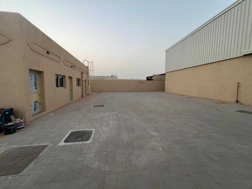 حوطة للإيجار في الصجعة - 24500 قدم مربع، تشمل مستودع 11000 قدم، 3 مكاتب، 2 حمام، مطبخ، غرفة كهرباء، نظام حريق، 2 شو روم مع الخدمات، وكهرباء 224 kW مجهزة لمصنع. الإيجار السنوي مع المحلات 1000000 درهم على 4 دفعات، موقع جاهز للعمل لجميع الأنشطة الصناعية والتجارية الكبرى