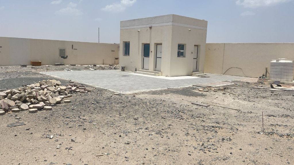 For rent in Sharjah, Al Sajaa Industrial Area, fenced plot of land (Hawtah) 8000 square feet Office, bathroom, and kitchen Annual rent AED80000