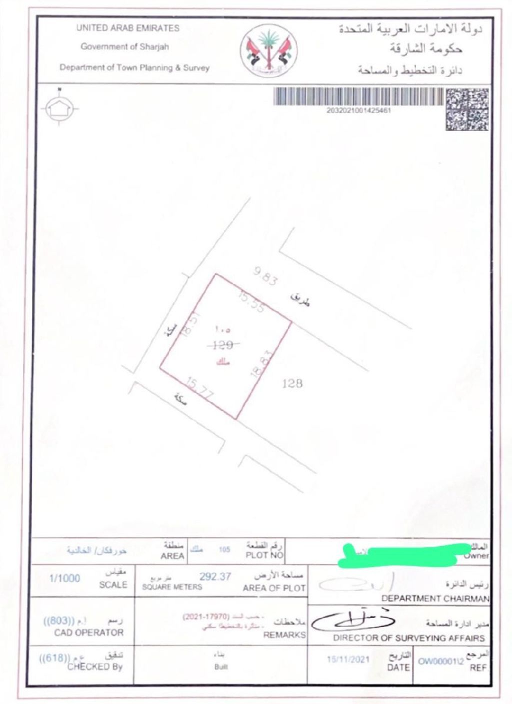 أرض تجاريه بمدينة خور فكان على الكورنيش مباشرة للاستعلام مساحة الأرض 300 متر السعر المطلوب مليون و800