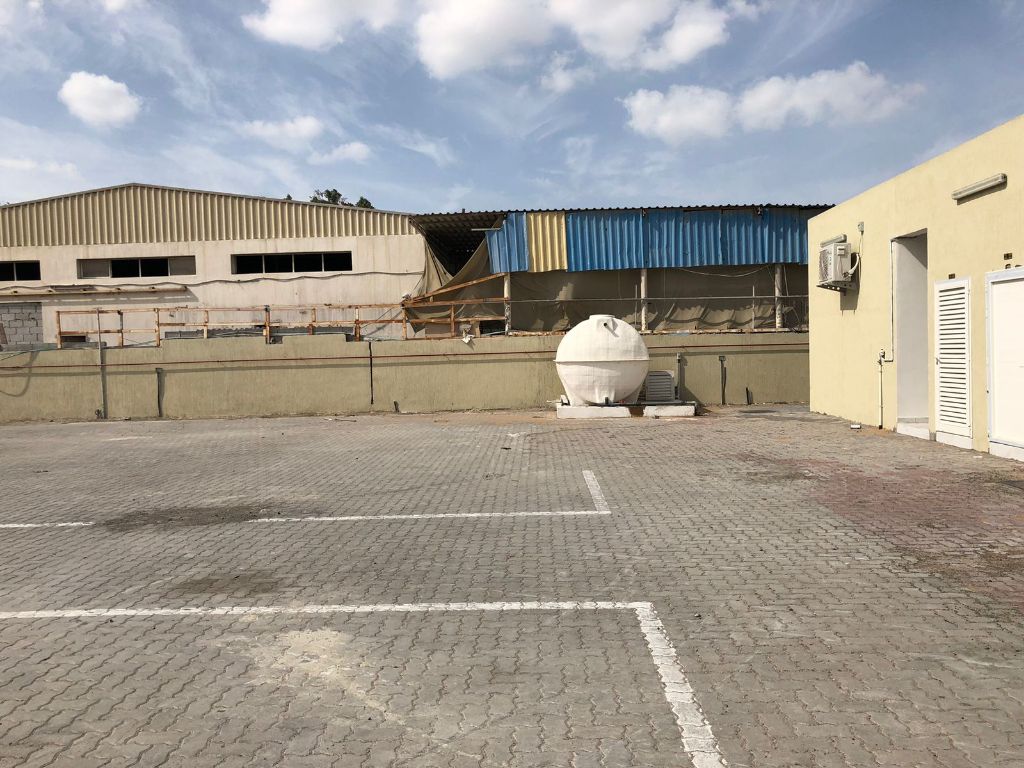A prime commercial space for rent in Industrial Area 15, Sharjah, directly on a main road in a vibrant and easily accessible location. The total area is 16000 square feet, equipped with an information or security room at the entrance, in addition to two street - facing offices with a clear facade suitable for commercial and administrative activities. Electricity is 51 kilowatts, suitable for various