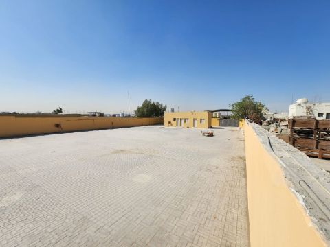 أرض مسورة للإيجار في الصجعة القديمة الشارقة المساحة 20000 قدم فيها كهرباء 42 كيلوواط مرصوفه بالانترلوك يوجد فيها مكتبين وحمام ومطبخ ومطلوب 320 ألف سنويا