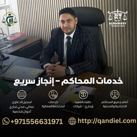 مستشار قانوني في الامارات لتقديم كافة الخدمات القانونية والاستشارات وكتابة جميع المذكرات وصحف الدعاوى وتقديم الطلبات في الدعاوى والانذرات العدلية وقيد الدعاوى والتنفيذات وتقديم الوكالات والعقود وكافة المعاملات لدى دائرة القضاء ومحاكم دبي وجميع أنظمة المحاكم