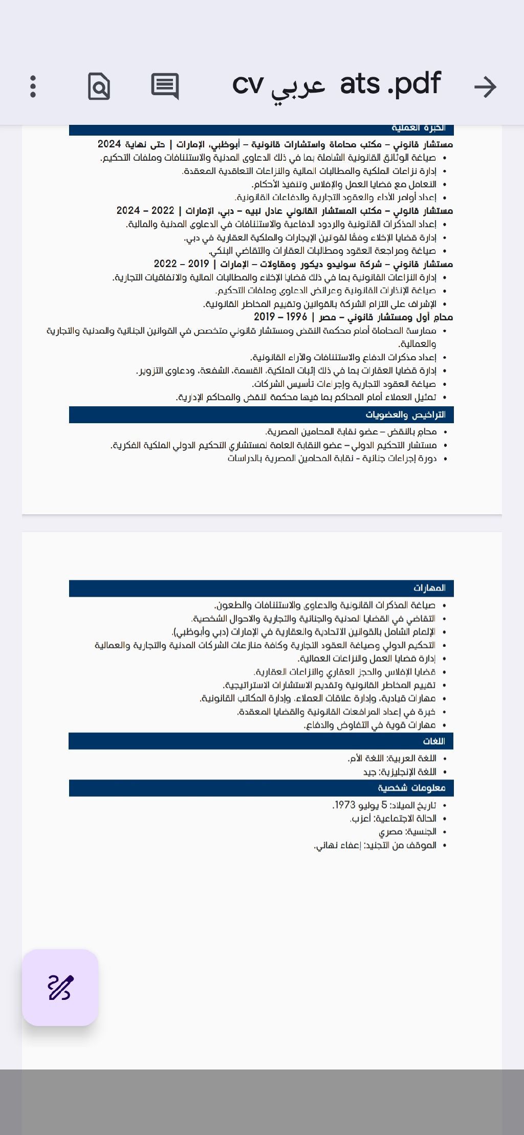 أطلب العمل. مستشار قانوني مصري. نقض خبرة اجمالية بالمحاماة جاوزت 29 سنة منهم 6 سنوات مستشار قانوني في الامارات. خبرة قانونية متنوعة. خبرة القوانين الاتحادية وتعديلاتها وقوانين إيجارات والملكية المشتركة دبي وأبو ظبي. مذكرات ولوائح وطعون وعقود ومنازعات الشركات والأفراد. خبرة شتي الدعاوي. نتائج ملموسة وتمثيل العملاء وتعاون. احترافية. أطلب العمل بمكان مناسب. مستعد للتواصل