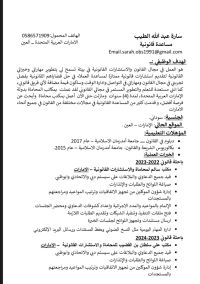 باحثه قانونية خبرة 4 سنوات في قيد الدعاوي ومتابعتها وتقديم الطلبات ومتابعتها وفتح البلاغات وتقديم الطلبات في التنفيذات واعطاء أبديت لموكلين واعداد رول الجلسات