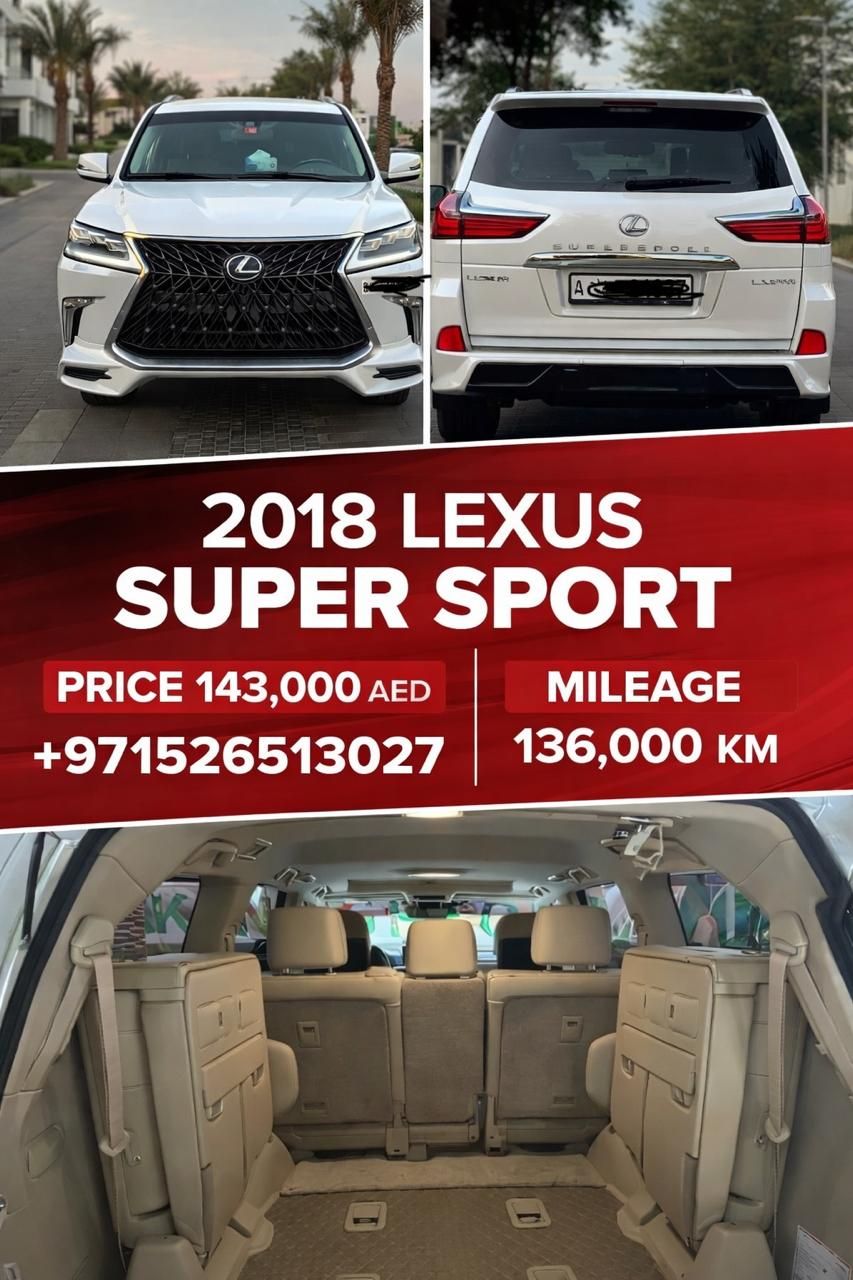 لكزس LX 570 موديل 2018 كامل المواصفات - تجمع بين الفخامة والقوة. 136,000 كم. سعر: 143,000 درهم إماراتي.
