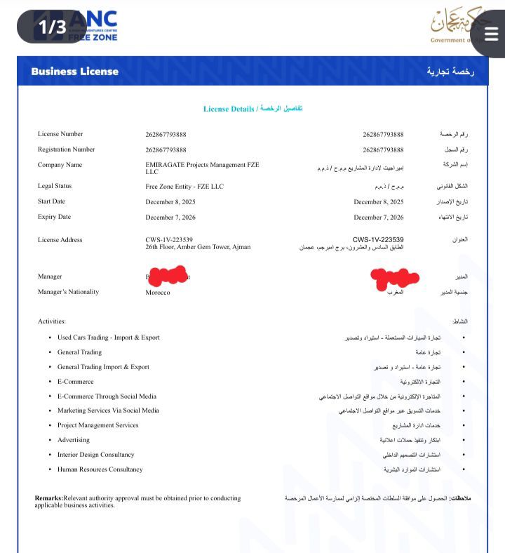 رخصة تجاريه حديثة التأسيس للبيع في عجمان كوطه 3 اقامات نظيفة