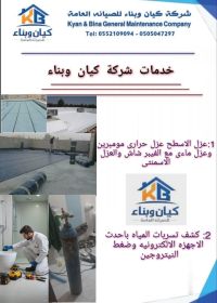 شركة كيان وبناء لكشف تسريبات المياه بأحدث الاجهزة الالكتروني كاميرات حراريه وقياس نسبة الرطوبة وحساس للكشف على مكان التسرب وضغط النيتروجين وجميع أنواع العوازل عزل خزانات مسابح أسطح حمامات بيارات بأحدث المواد الألمانية الكشف مجاني عند الاصلاح ويوجد بالشركة جميع أعمال الصيانة العزل والبلاط والدهانات والسباكة والديكور وجميع أعمال الايبوكسي وأرضيات 3d نتواصل بجميع مدن الامارات