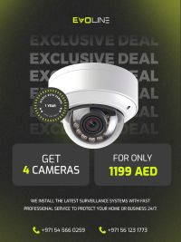 شركة Evo Line لخدمات الشبكات والأنظمة الأمنية، نقدم لكم خدمات متكاملة تشمل تركيب كاميرات المراقبة (CCTV) أنظمة حماية وانذار متطورة، صيانة أنظمة المراقبة والشبكات، شبكات داخلية وخارجية وخدمات الانترنت، مقاسم هاتفية (IP - PBX) واتصالات داخلية للشركات، نغطي جميع امارات الدولة، احصل على معاينة مجانية للموقع قبل التركيب، جودة عالية - أسعار منافسة - تنفيذ احترافي