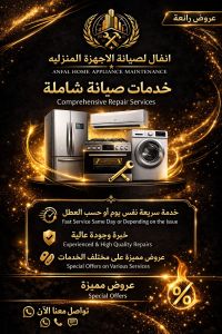 خدمات صيانة الاجهزة المنزلية - خبرة وجودة بأسعار مناسبة هل تعاني من عطل في الاجهزة المنزلية نحن نقدم لك الحل السريع والموثوق صيانة المكيفات (تنظيف - تعبئة غاز - اصلاح أعطال) صيانة الثلاجات (تبريد ضعيف - تسريب - أعطال كهربائية) صيانة الغسالات (أوتوماتيك وعادية) صيانة الأفران وبتجازات أم كشف الأعطال بسرعة واصلاح فوري خبرة عالية في المجال خدمة سريعة وفي نفس اليوم أسعار مناس