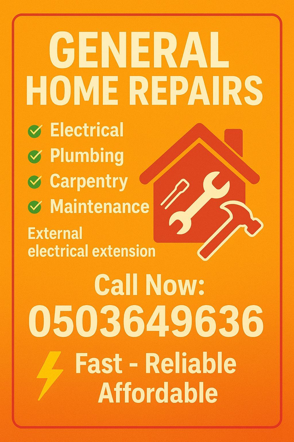 General Home Repairs Electrical - Plumbing - Carpentry - Maintenance - External electrical extension call now Fast - Reliable - Affordable (Ajman - Sharjah - Dubai)