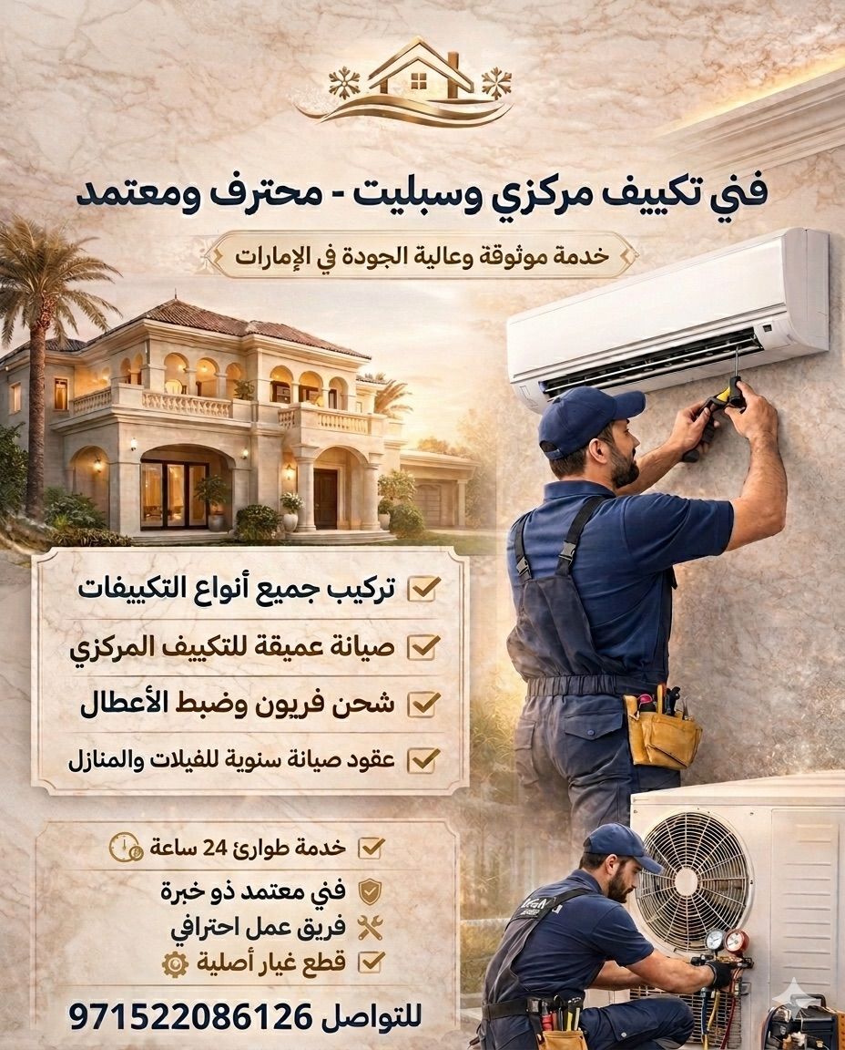 AC Technician - Central & Split Units (UAE) Installation, maintenance and cleaning services Fast service and reasonable prices Available 24 hours Contact
