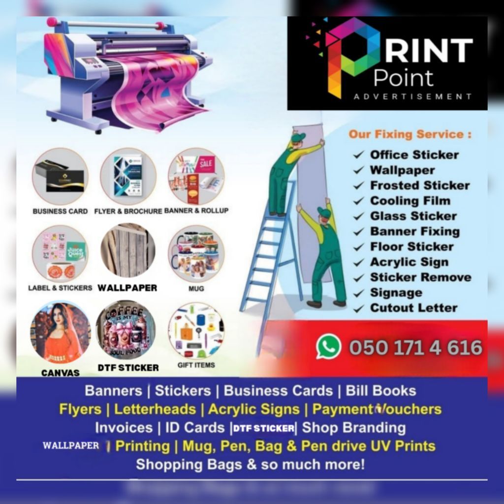 مطبعة تقدم خدمات شاملة. بانر فنيل اكريلك ورق جدران بزنس كارد وغيره