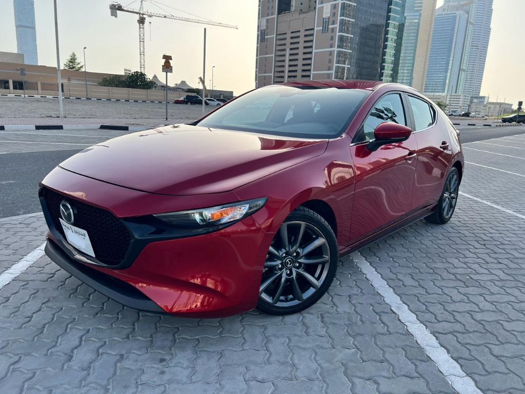 Mazda 3 Hatchback Sport 2020 - American specifications. Distance traveled: 46,000 km. Car details: Skyactiv-G engine, 2.5L capacity, 4 cylinders. Power: 191 HP/186 lb-ft torque. Transmission: 6-speed automatic (Sport mode). Drive system: All-wheel drive (AWD). Excellent road stability. Safety and assistance systems: Adaptive cruise control with stop-and-go function + front and rear radar. Lane keeping system + distance monitoring.