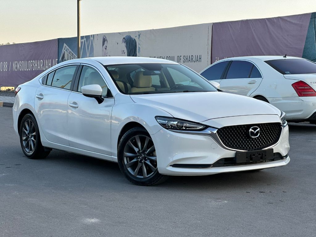 Mazda 6 GCC, Model 2024, 2.5 CC 4 Cylinder Engine, Mileage 57,000 km, Exterior Color White, Interior Royal Beige. Features: Push Start, Steering Controls, Cruise Control, Drive Modes (Sport), Power Mirrors, Folding Mirrors.