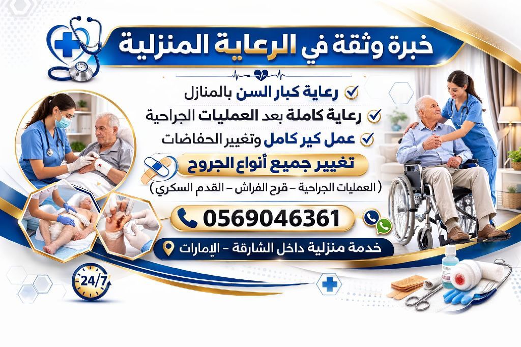 نقدم خدمات تمريض منزلي باحترافية عالية مع كير كامل للمريض داخل المنزل الخدمات المتوفرة كير كامل (نظافة شخصية - حمام سريري - عناية يومية) تغيير الحفاضة والاهتمام بالنظافة ورعاية كبار السن ومساعدتهم في الحركة والأكل رعاية مرضى طر يحي الفراش تغيير جميع أنواع الجروح (العمليات الجراحية وقرح الفراش والقدم السكري)