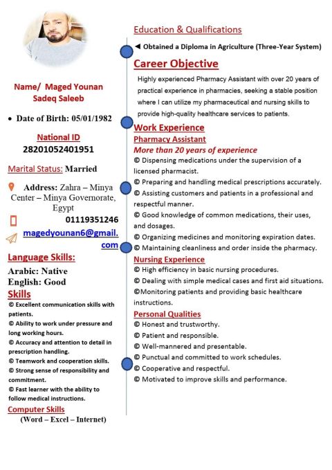 صيدلي حديث التخرج ابحث عن فرصة عمل مناسبة