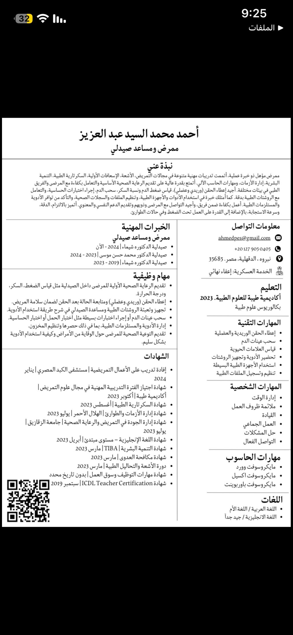أنا ممرض ومساعد صيدلي ابحث عن عمل في مركز طبي أو تمريض منزلي