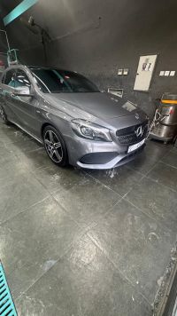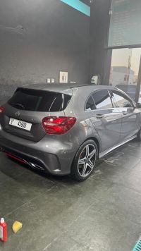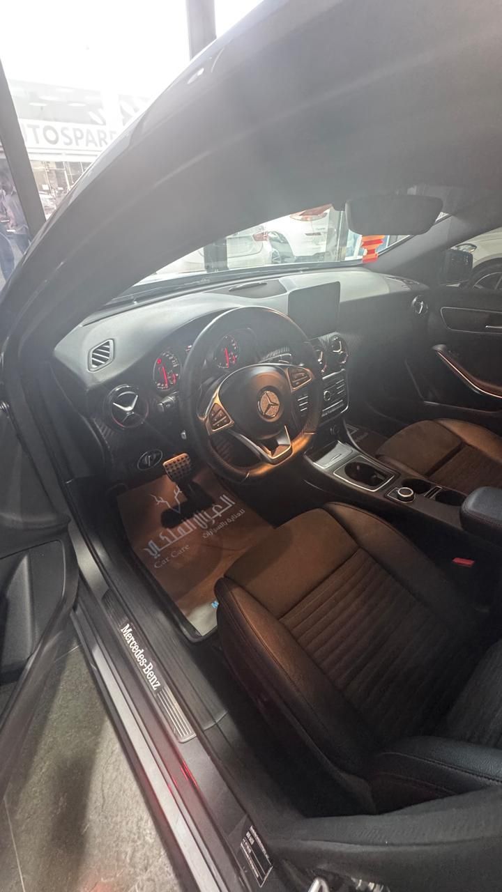 Mercedes-Benz A250 Sport 2018 model, clean (GCC specifications). Turbo engine 2.0L (211 HP) with 7-speed dual-clutch transmission - smooth, efficient, and easy to park. The Sport package adds AMG body kit, 18-inch AMG wheels, and sport seats with red stitching. All features work with high efficiency, providing precise and smooth driving. Key features: GCC specifications - 2.0L turbo engine - 7-speed dual-clutch transmission - paddle shifters - LED headlights.
