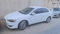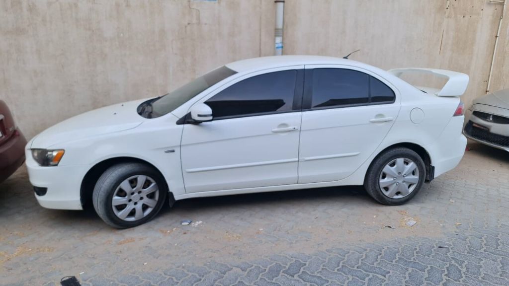 سيارة ميتسوبيشي لانسر بحالة جيدة، اللون أبيض، نسخة يابانية. تم إجراء صيانة كاملة مع تغيير المحرك.