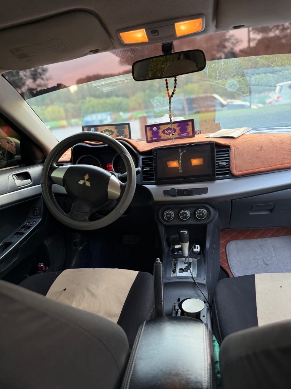 Mitsubishi Lancer Fortis 2014 model, GCC specifications. Engine: 4-cylinder, 2.0L capacity. Mileage: 173,000 km (negotiable). Features: Screen camera, very clean car. Warranty: Gearbox, engine, chassis. Condition: Subject to inspection. Selling price: 8,000 AED. Note: The car needs AC compressor replacement.