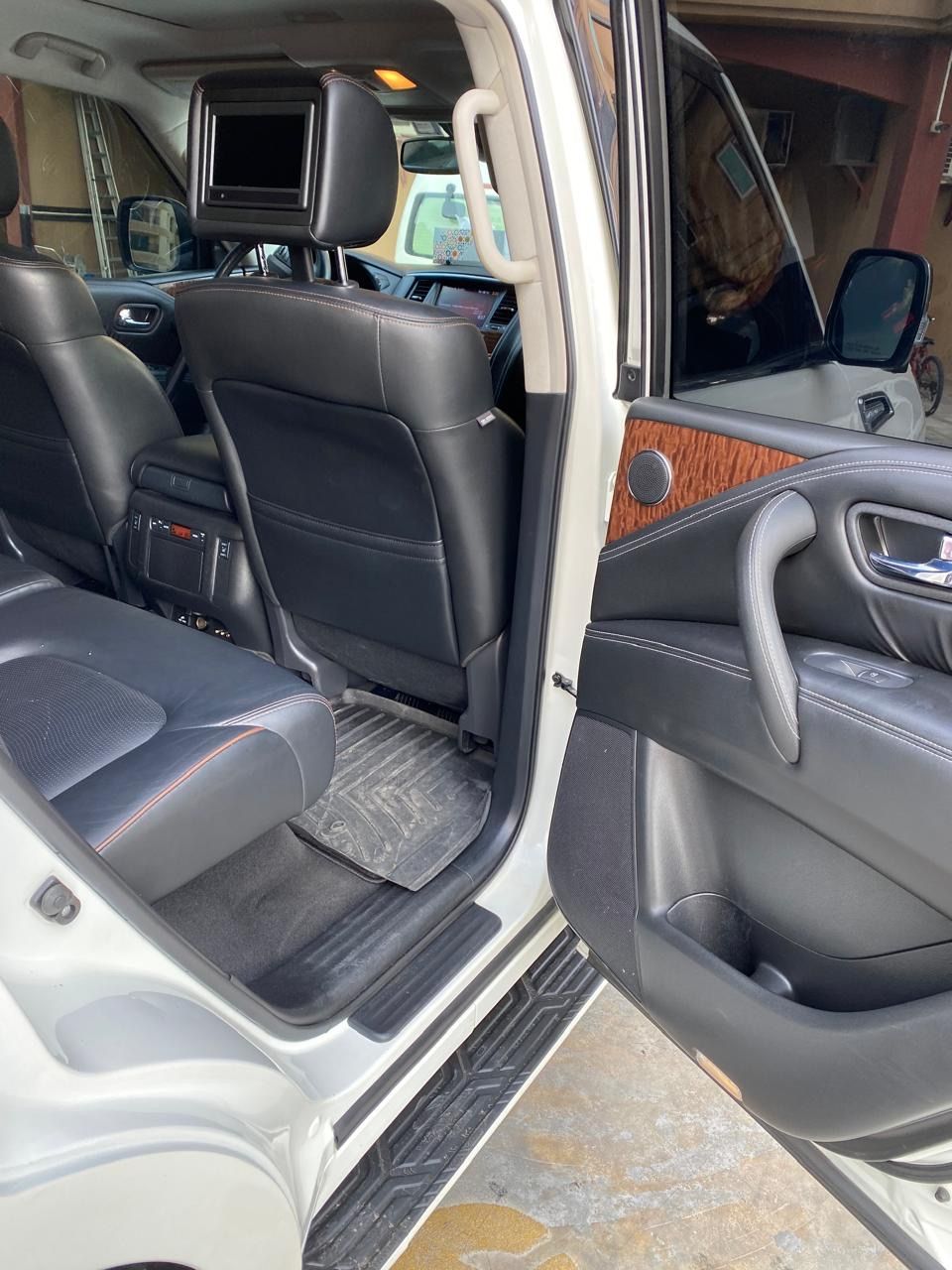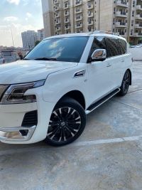 For sale: 2017 Nissan Armada converted to 2020 Patrol specifications - White exterior / Black interior - 7 family seats - 4WD system - 149,000 km mileage - Final price 75,000 AED. Full specifications: Powerful and reliable V8 engine - 360-degree camera for complete visibility around the vehicle - Rear screens for passengers - Front and rear electric seats - Keyless entry - Push start system