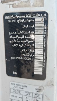 Nissan Urvan model 2014 with 280 km mileage, no accidents, warranty on gearbox, engine, and chassis.