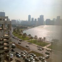 مكتب مساحة 1400 قدم في المجاز 1 برج فخم مكون من 5 غرف مستقلة و2 حمامات بسعر 70000 على شيكان