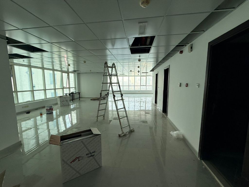 Luxury commercial office in Al Majaz 2 inside a famous commercial tower with sea view + modern finishing + spacious area 1850 SqFt + 2 bathrooms + kitchen + parking close to all public services with easy payment and flexible payment plans