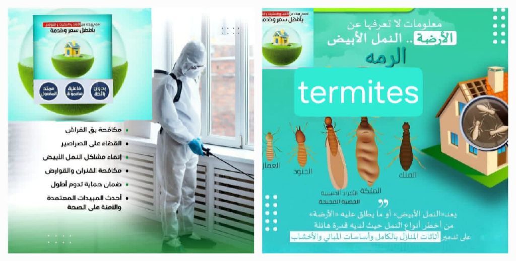 مكافحة جميع الحشرات الزاحفة والطائرة رش البيت داخلي وخارجي بدون رائحة وبدون مغادرة المنزل لا يترك اثر علي الجدار والزجاج والمفروشات أو الستائر يشمل جميع الغرف والمطابخ والحمامات والحديقة المنزليه جميع المواد المستخدمه أمنه وفعاله ومصرح بها رش وجل ومصائد وطعوم